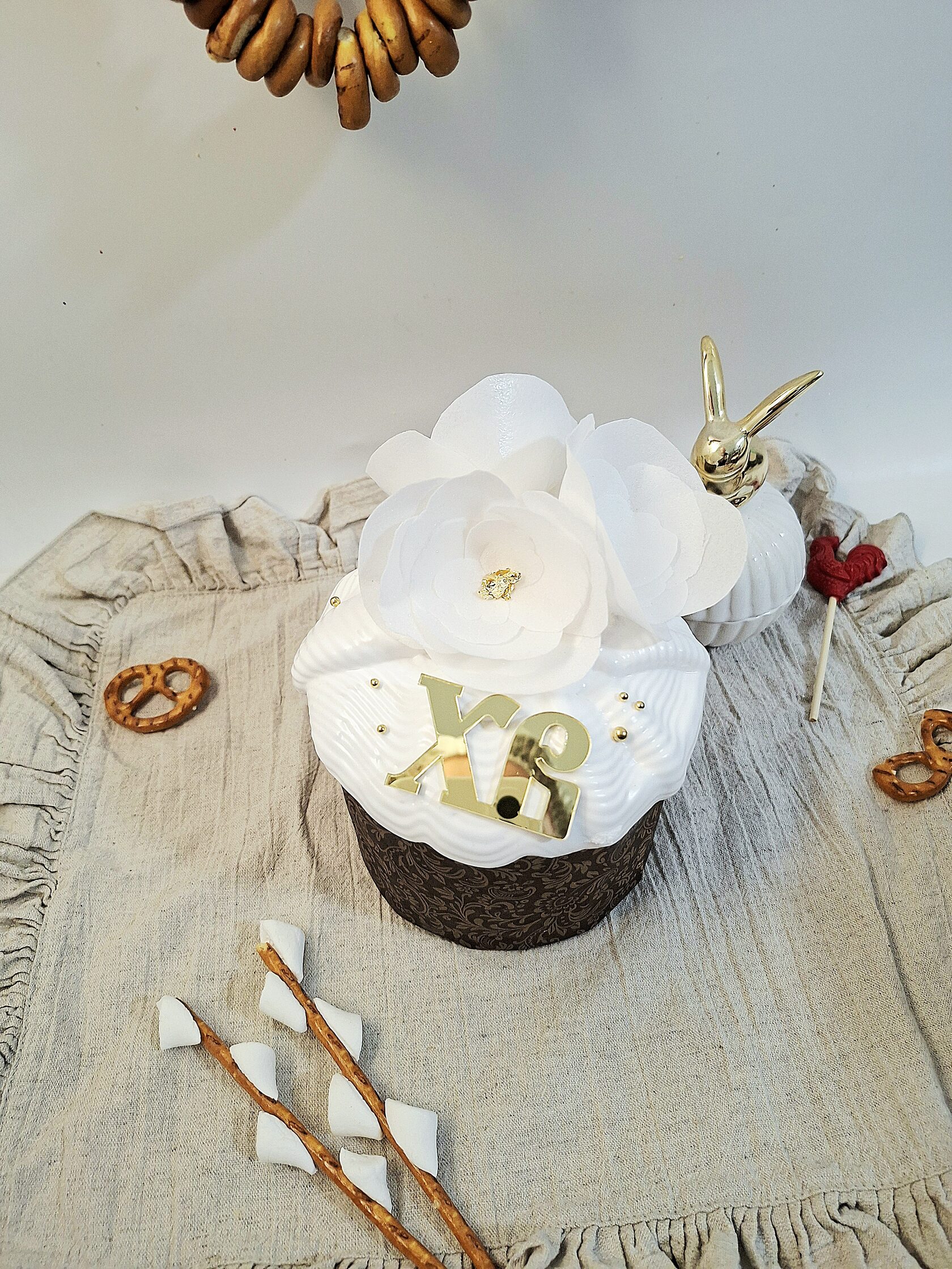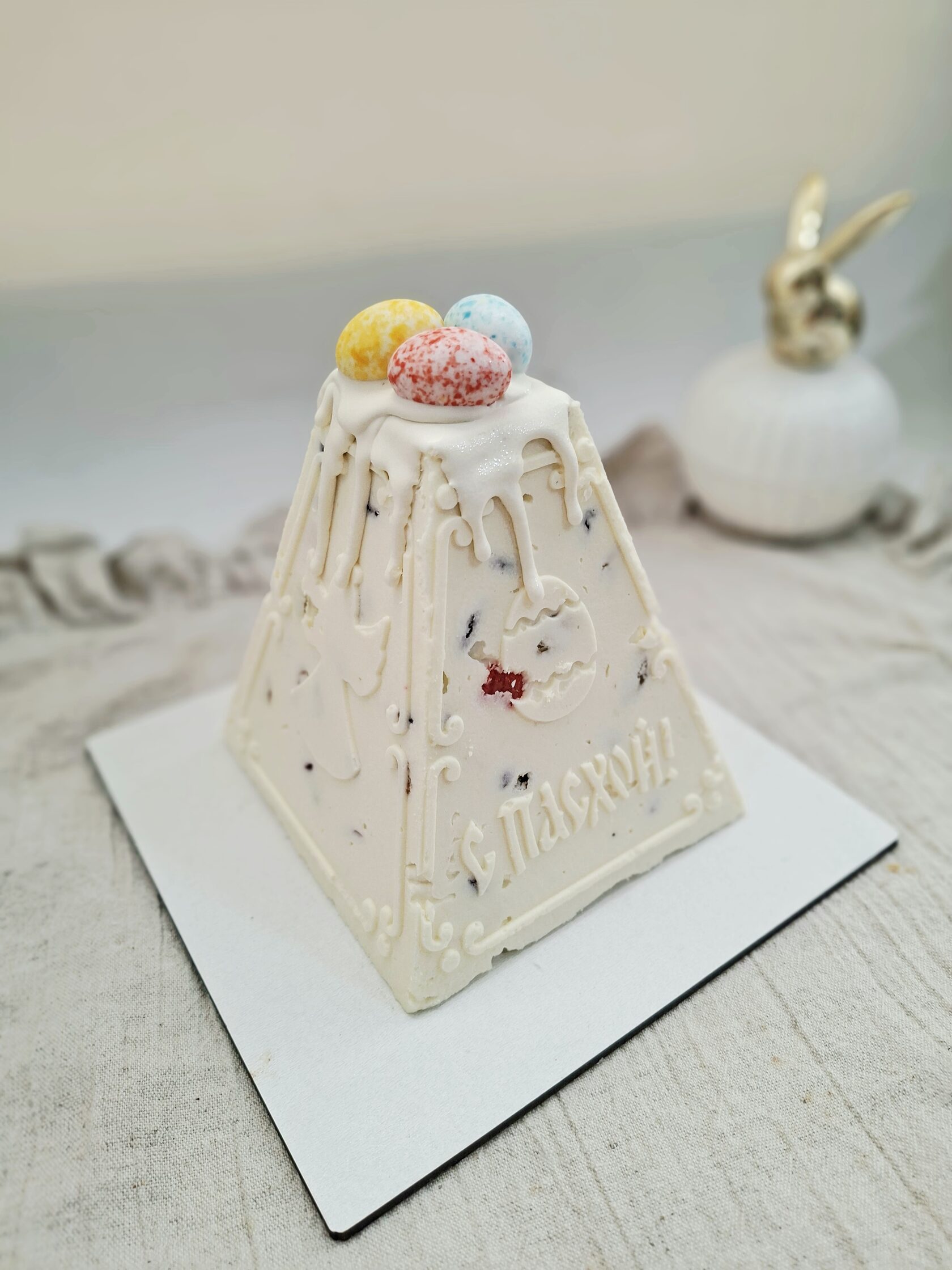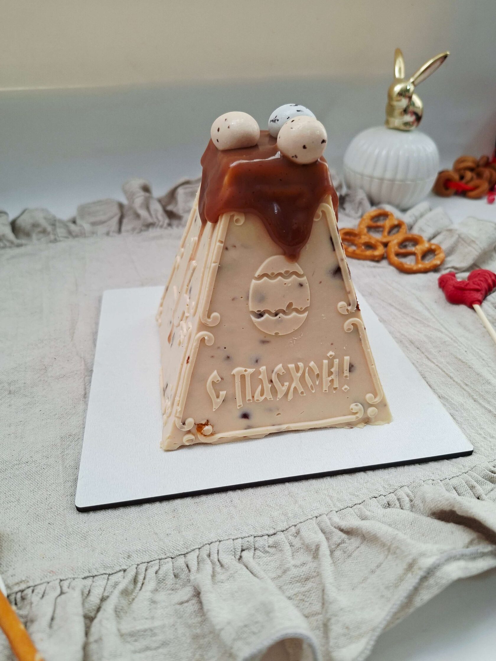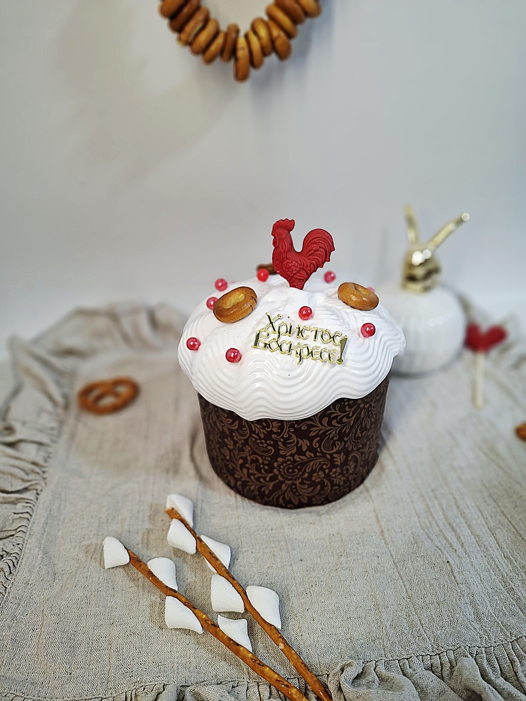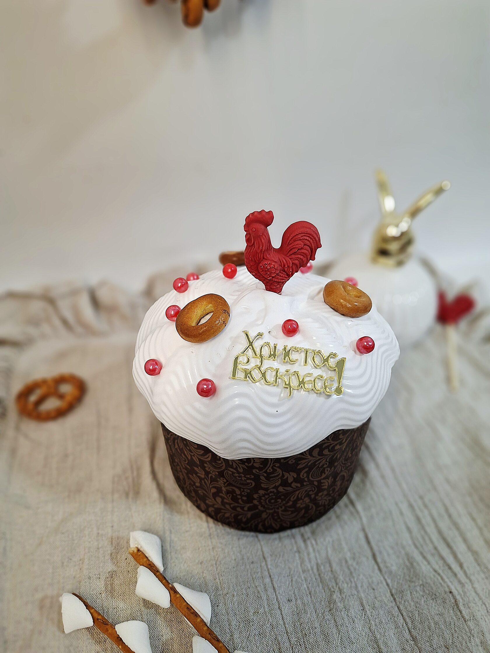 Кулич творожный бездрожжевой с декором в русском стиле